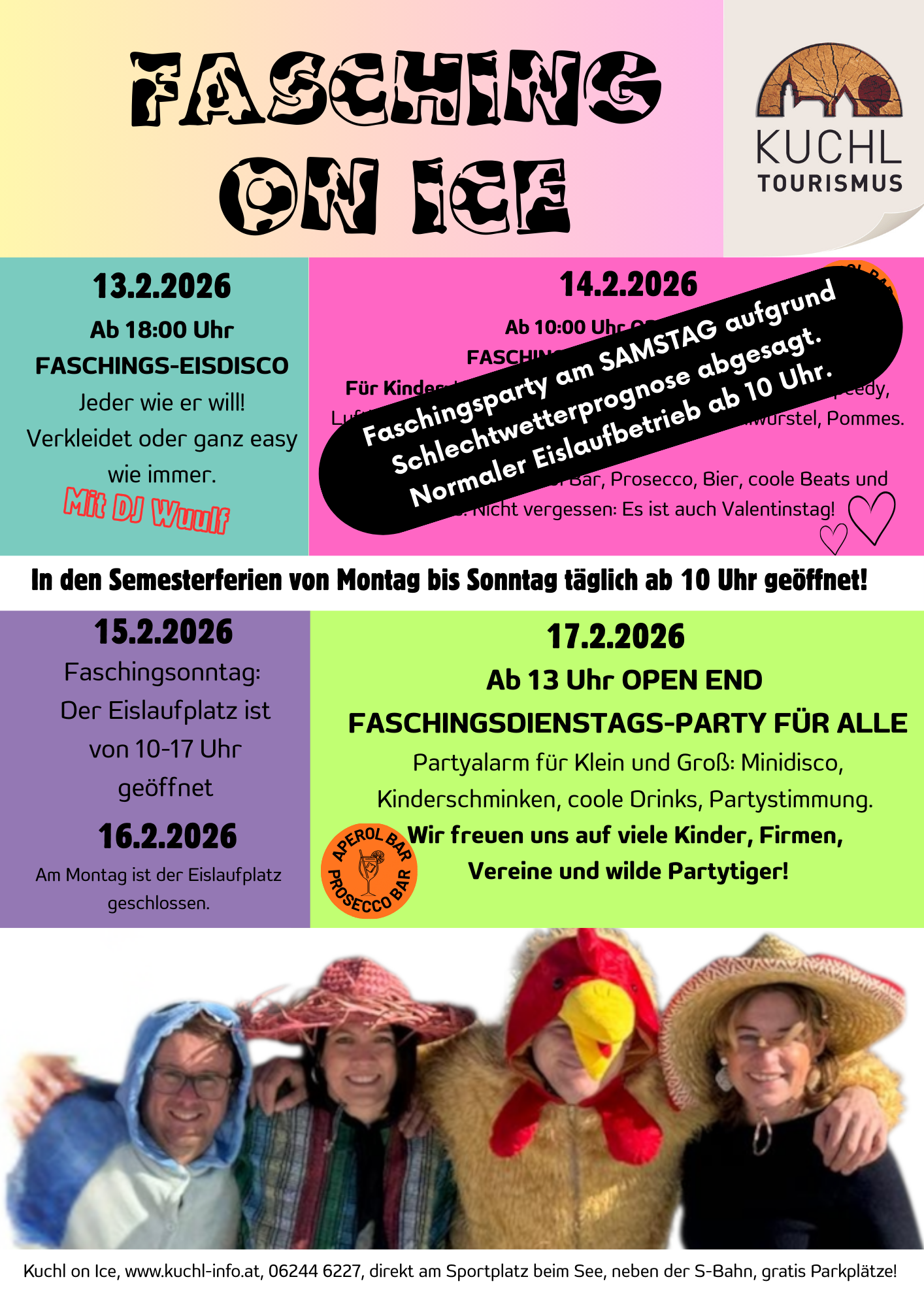 UPDATE: Witterungsbedingt schließt der Eislaufplatz mit 21.2.2026. Am 20.2. findet noch einmal die letzte Eisdisco statt, danach ist diese Eislaufsaison beendet. Wir danken allen Besuchern für das zahlreiche Kommen!